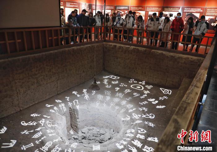 1月17日,台生在河南安阳殷墟遗址参观甲骨窖穴坑。中新社记者 阚力 摄