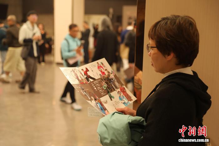1月15日晚,一名台湾观众在等待入场时翻看戏曲表演介绍。中新社记者 刘大炜 摄