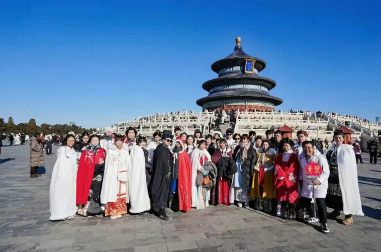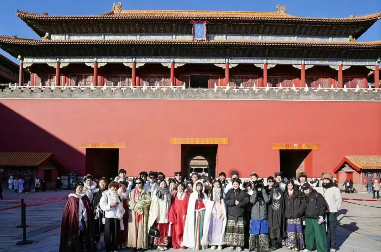 “着汉家衣裳,赴千年之约。”汉服知识讲座上,讲师从先秦曲裾深衣到明清马面裙,从形制规范到文化寓意,详实讲解让营员们沉醉于中华服饰文化的独特魅力。当大家身着汉服走进天坛与故宫,青砖黛瓦间,衣袂翩跹的身影与宏伟古建相映成趣,仿佛穿越千年时光。大家一边聆听讲解员讲述红墙黄瓦后的历史故事,一边不时驻足拍摄,用镜头定格这份跨越海峡的文化共鸣。“第一次身着汉服行走在故宫,亲身体验了中华传统文化的厚重与雅致,真切感受到中华文明的博大精深。”一位营员的心声,恰是本次文化体验活动的初心。