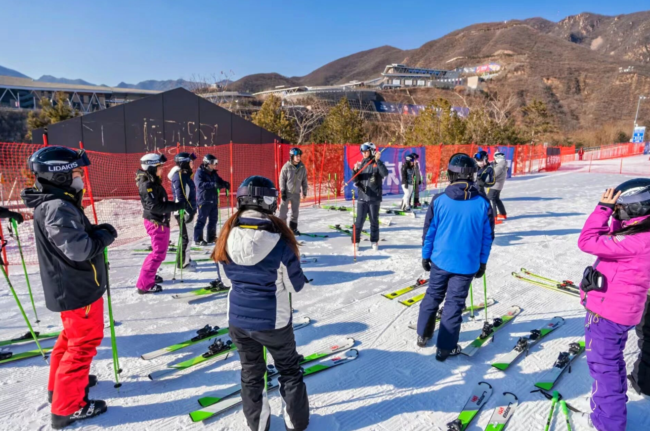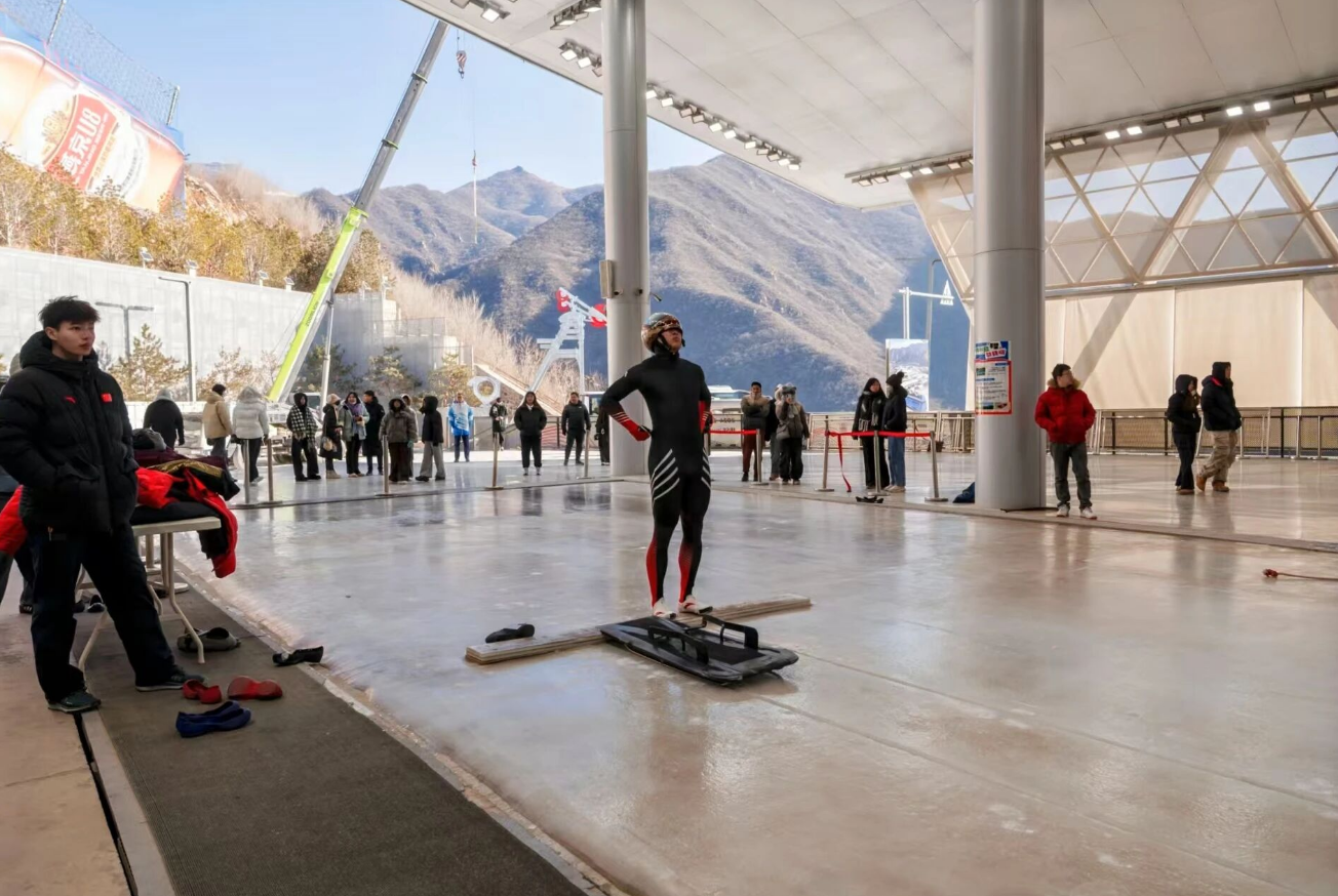 在国家雪车雪橇中心“雪游龙”的山顶出发区,营员们观摩国家队训练,运动员身着专业装备疾驰于赛道之上,实时播报的竞速时速不断刷新,直观传递出冰雪运动的速度与激情。站在观景台俯瞰,“雪游龙”蜿蜒穿梭于山林之间,冬奥村建筑与自然山水完美相融,生态优先、资源节约的建设理念在此得到生动诠释。