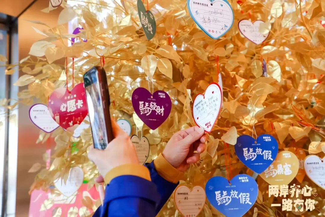 而在通州副中心邮储大厦一层举办的“两岸齐心”文化跨年市集,更让交流充满“烟火气”。北京老字号的糖葫芦、非遗糖画与台湾的卤肉饭、姜母鸭同台亮相,书法老师现场书写融入两岸元素的新春对联赠与参与骑友,活动现场还立有一棵“两岸齐心”许愿树,骑友们亲手写下渴望两岸交流的心情与新年愿望,郑重挂上枝头……,可以说,市集里的每一份特产、每一项手艺,都是两岸文化“各美其美、美美与共”的生动证明。